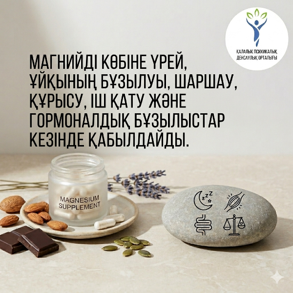 Магнийді көбіне үрей, ұйқының бұзылуы, шаршау, құрысу, іш қату және гормоналдық бұзылыстар кезінде қабылдайды