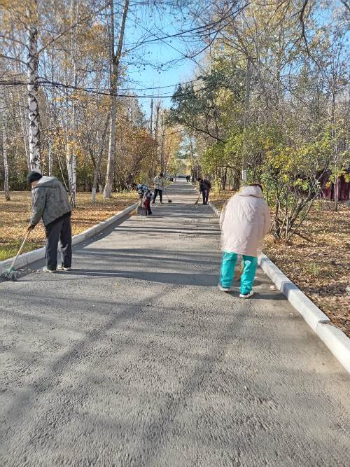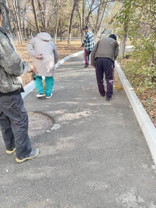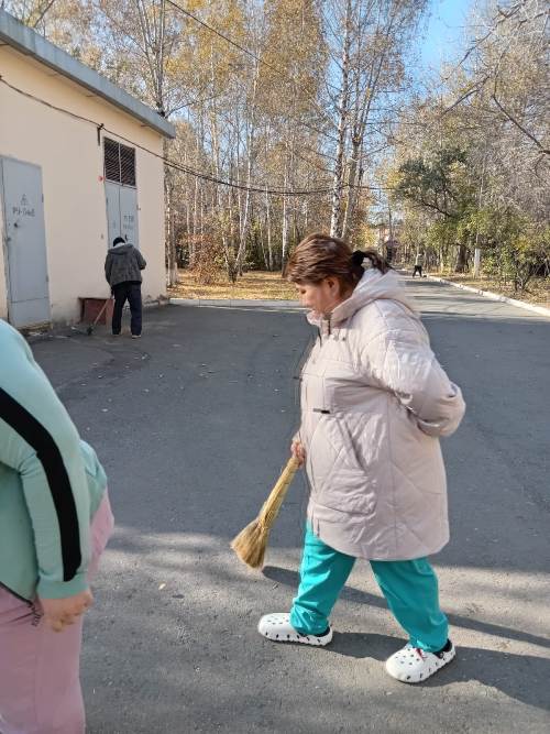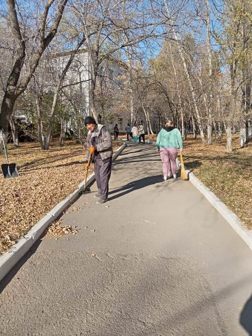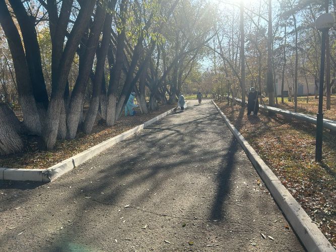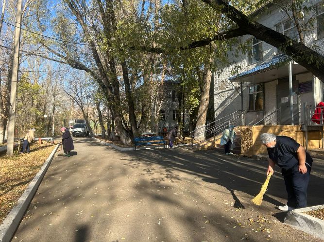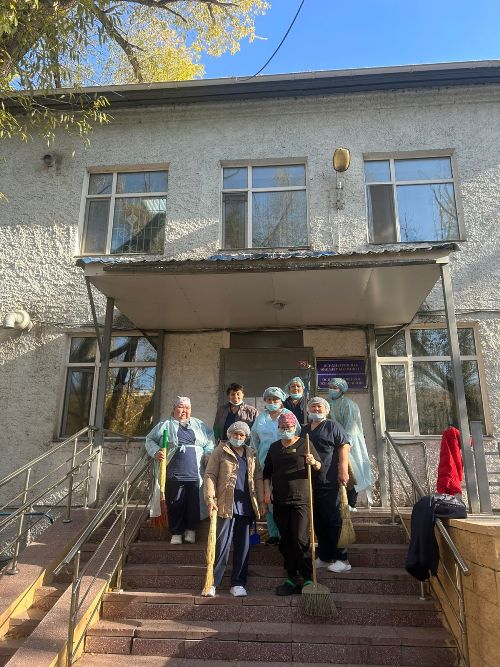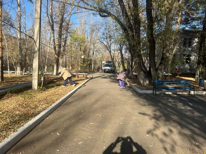 Сенбілік барысында қызметкерлер ораталықтың аумағын тазалап, жасыл желектерді ретке келтіріп, қоқыстарды жинады.
