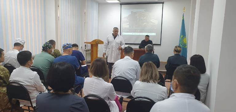 27 әскери қызметші қатысты. Алкогольден және есірткіден масаңдықты диагностикалау, медициналық куәландыру жүргізу тәртібі бойынша сұрақтар қойылды.