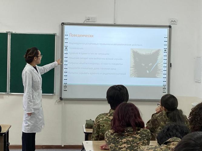 Кафедра ассистенттері Шамарданова Ольга Михайловна, Койшибеков Токтар Толеухановичтің жетекшілігімен темекі, алкоголь және есірткіге тәуелділіктің алдын алу бойынша баяндамалар әзірленіп, ұсынылды.
